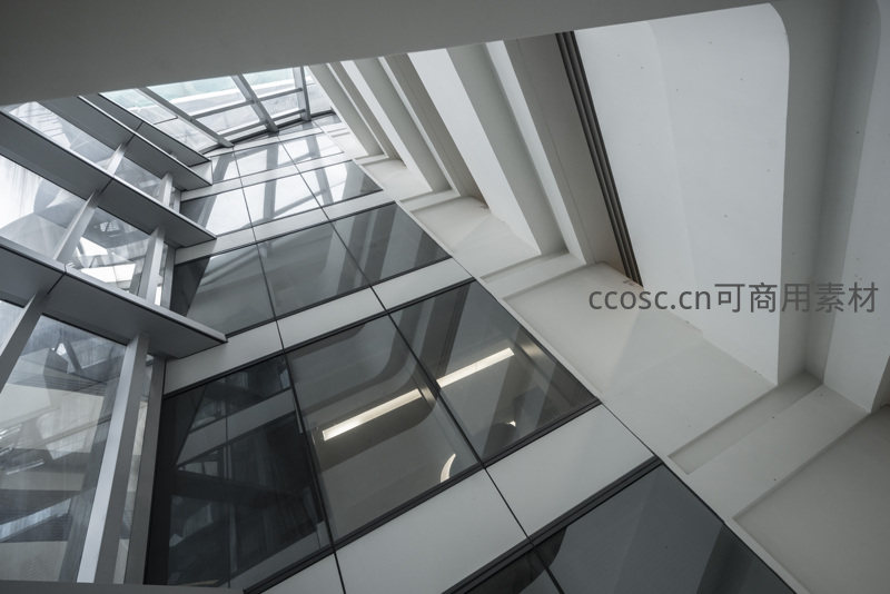 现代建筑玻璃天窗与几何线条的光影艺术