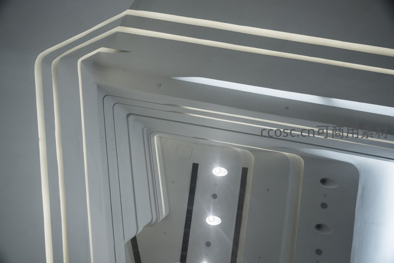 层层递进的白色几何造型中,内嵌暖白光带勾勒轮廓,形成强烈的纵深感与节奏感,展现现代建筑设计中对光线与空间关系的精妙把控。