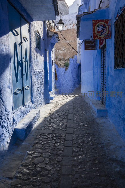 阳光洒落的蓝色迷宫小巷