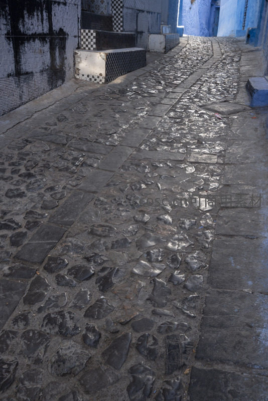 湿漉漉的石板路映着幽蓝墙影