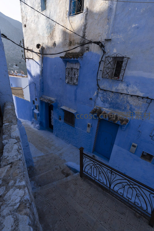 俯瞰蓝色阶梯,铁艺栏杆映衬古宅风情