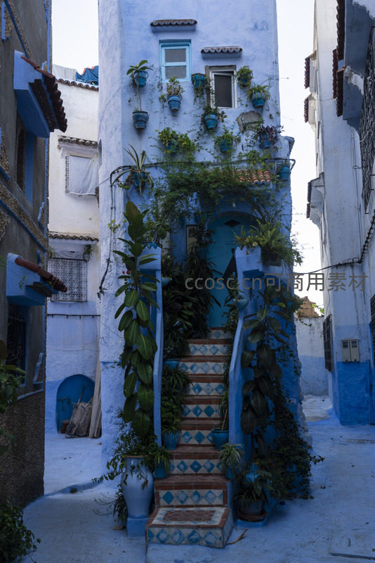 绿植环绕的蓝色门廊,充满生机的庭院入口