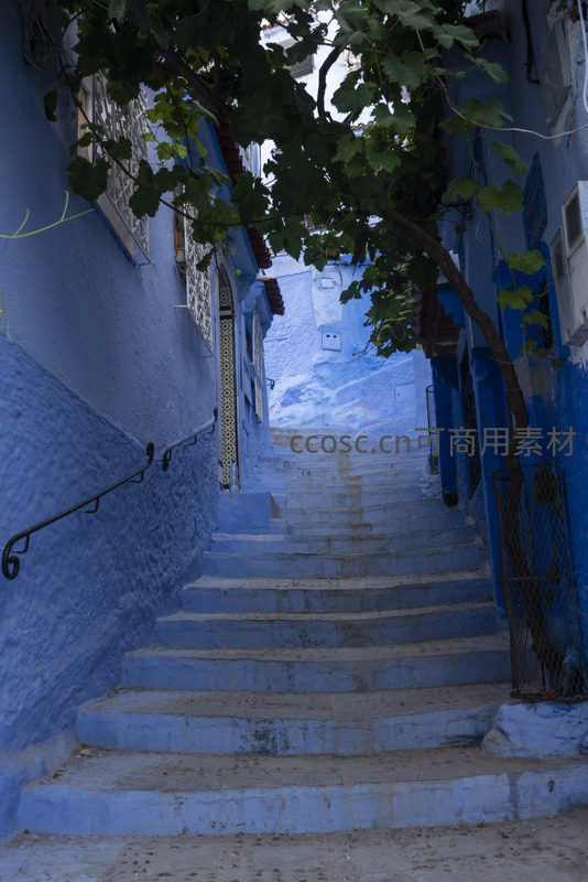 蓝墙阶梯,绿叶掩映中的通幽小径