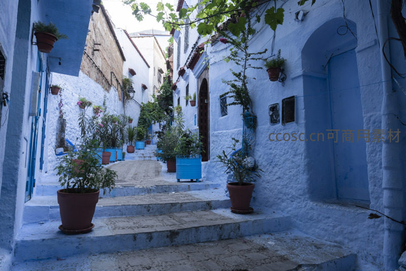 阶梯小径上的蓝白世界,盆栽与拱门营造诗意生活空间