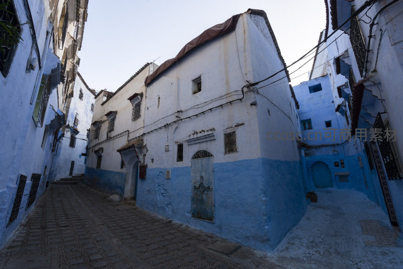 蓝白相间的古城街道宁静悠长