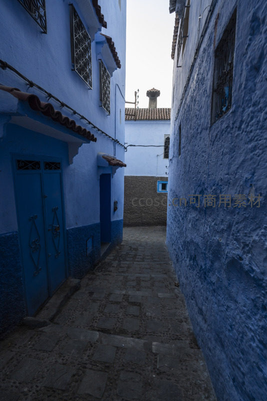 狭窄蓝色小巷尽头透出天光
