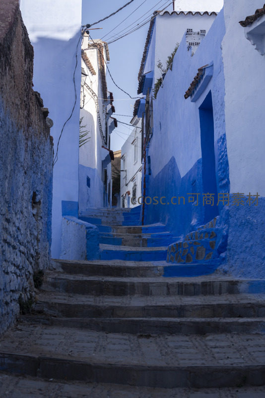 阳光洒在摩洛哥舍夫沙万标志性的蓝白建筑上,蜿蜒的石阶小巷通向未知,每一处转角都充满异域风情与宁静。