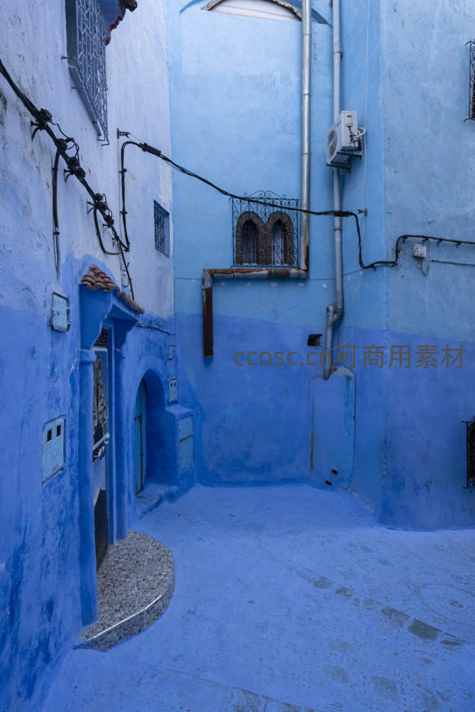 狭窄的蓝色巷弄里,现代生活的管线与古老建筑的窗棂并存,展现出传统与现代交融的独特魅力,每一处细节都充满生活的真实感。