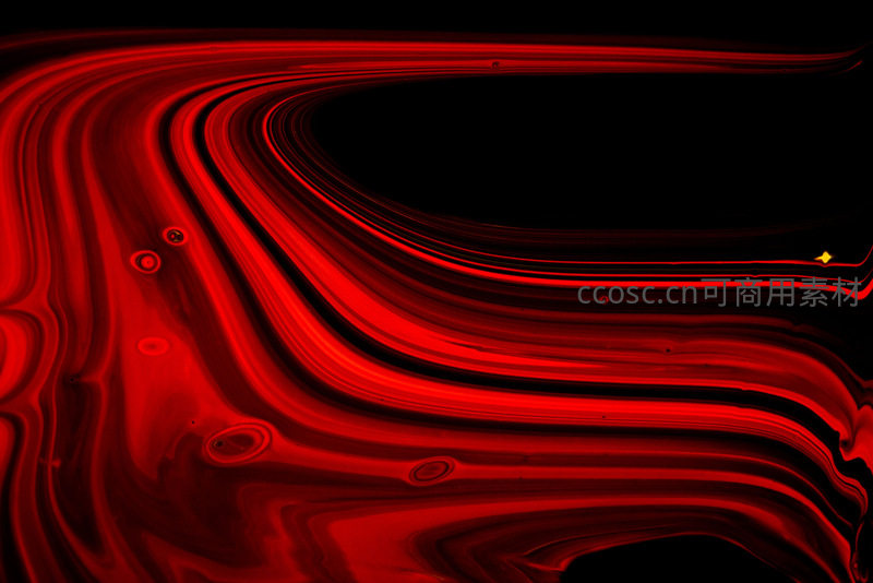 在纯黑背景下,浓烈的深红色液体如丝绸般层层叠叠地流动,形成优雅而富有韵律的波纹,营造出神秘、奢华且充满张力的视觉效果。