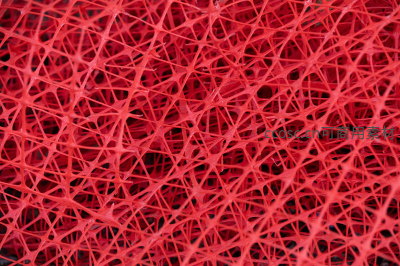 一张充满视觉冲击力的红色网状结构微距特写,交织的线条与空隙构成复杂的几何图案,展现材料独特的质感与设计美感。