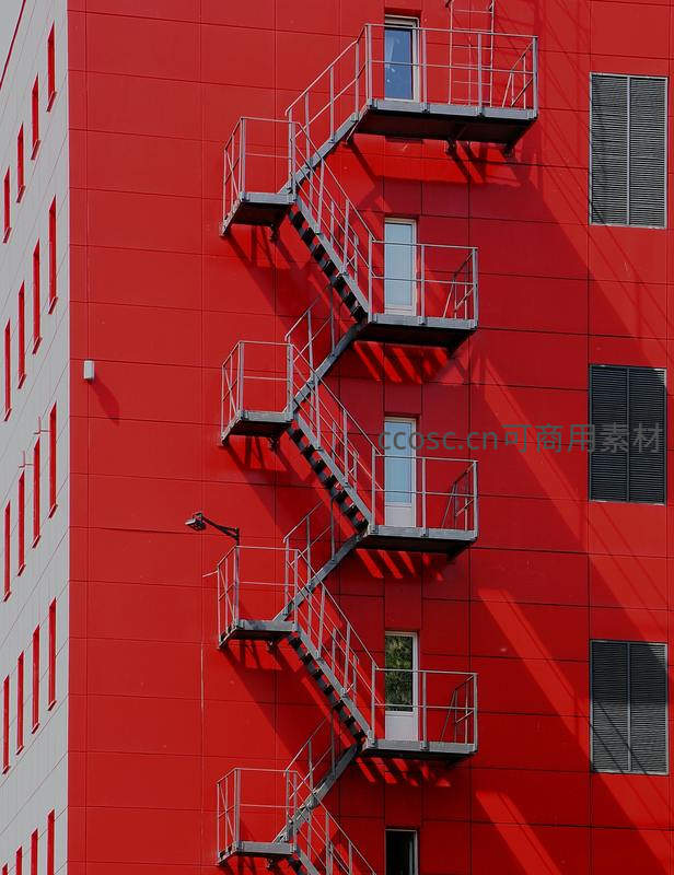 红色建筑外墙配金属消防楼梯