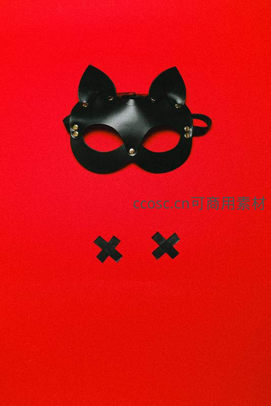 黑色猫耳面具配十字装饰置于红底