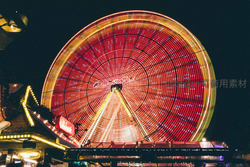 夜幕下霓虹闪烁的摩天轮盛景