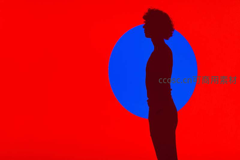 红蓝背景中的人物剪影艺术