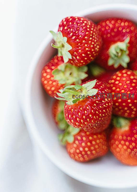 新鲜草莓特写盛于白碗
