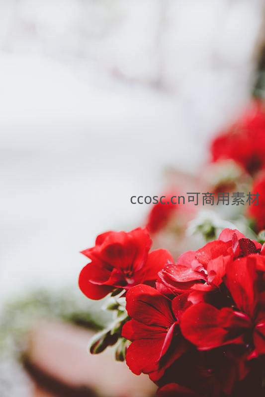 在柔和的光线下,鲜艳的红色花朵以微距视角呈现,花瓣纹理清晰可见,背景虚化营造出梦幻氛围,尽显自然之美与生命力。