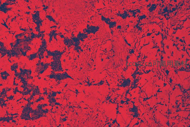 画面以鲜艳的红色为底,点缀深邃的靛蓝色块,形成如泼墨或腐蚀般的不规则纹理,充满艺术表现力。