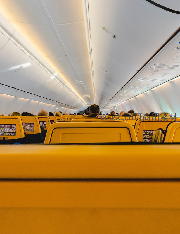 飞机客舱内整齐的黄色座椅