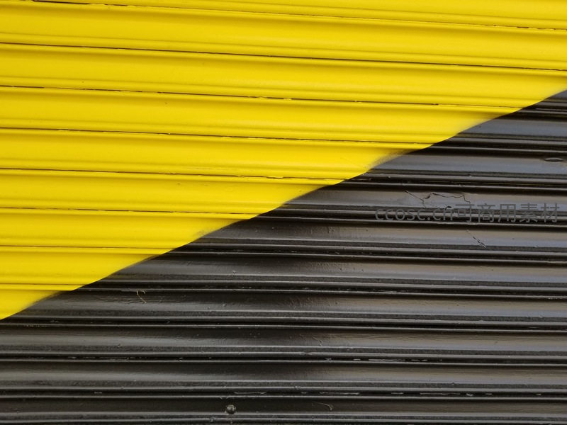 黄黑相间的波纹金属卷帘门特写