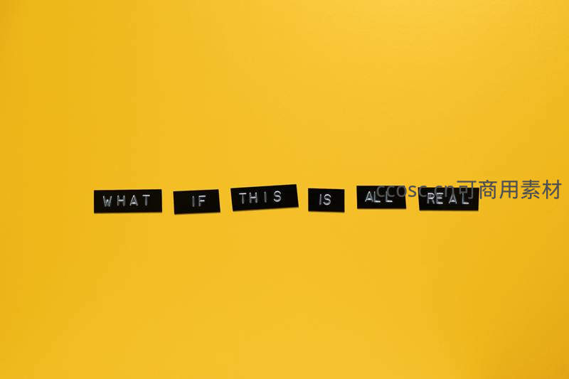 在纯净的黄色背景上,黑色的字母块拼出“WHAT IF THIS IS ALL REAL”的句子,简洁有力,引发观者对现实与虚幻的深度思考。
