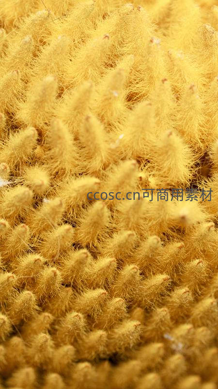 向日葵花蕊微距特写,金黄绒毛细腻如丝