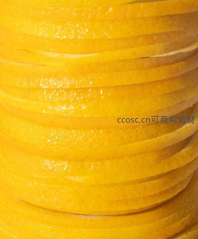 多层新鲜橙子切片紧密堆叠,果肉晶莹剔透,汁水充盈,展现自然的鲜亮色泽与细腻纹理,令人垂涎欲滴。