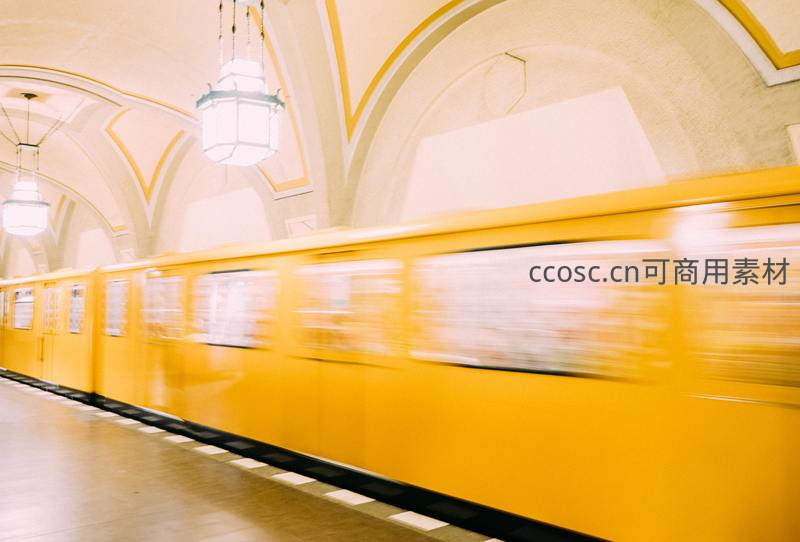 疾驰中的黄色地铁列车