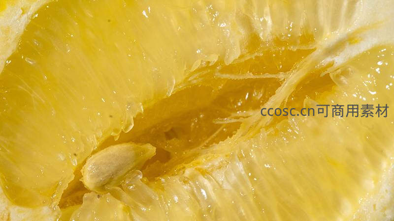 微距镜头捕捉到新鲜柚子切开后的果肉细节,饱满的汁囊晶莹剔透,呈现出诱人的金黄色泽和丰富的纹理。