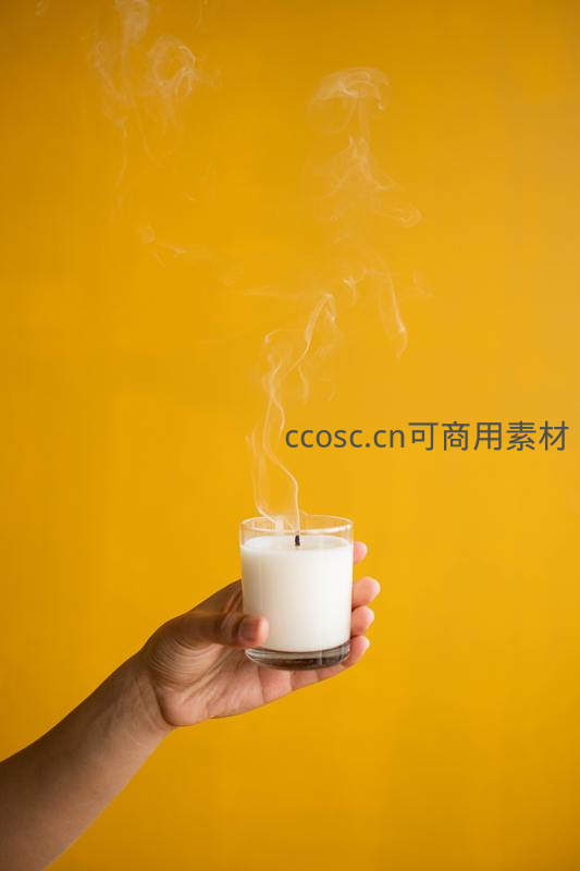 手握香薰蜡烛,袅袅青烟升腾于暖黄背景