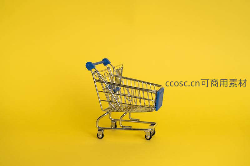 迷你购物车置于鲜艳黄色背景中央