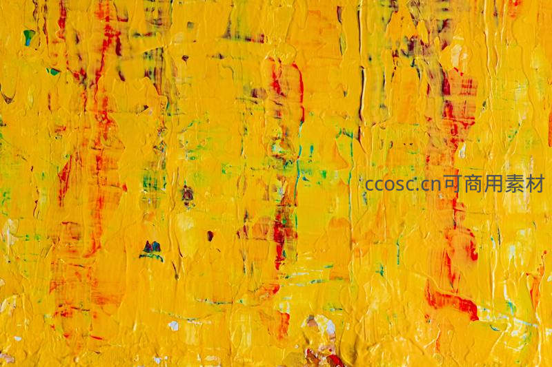 充满活力的黄色油画颜料厚涂而成,表面凹凸不平,夹杂着红绿点缀,展现出强烈的视觉冲击力和艺术质感。
