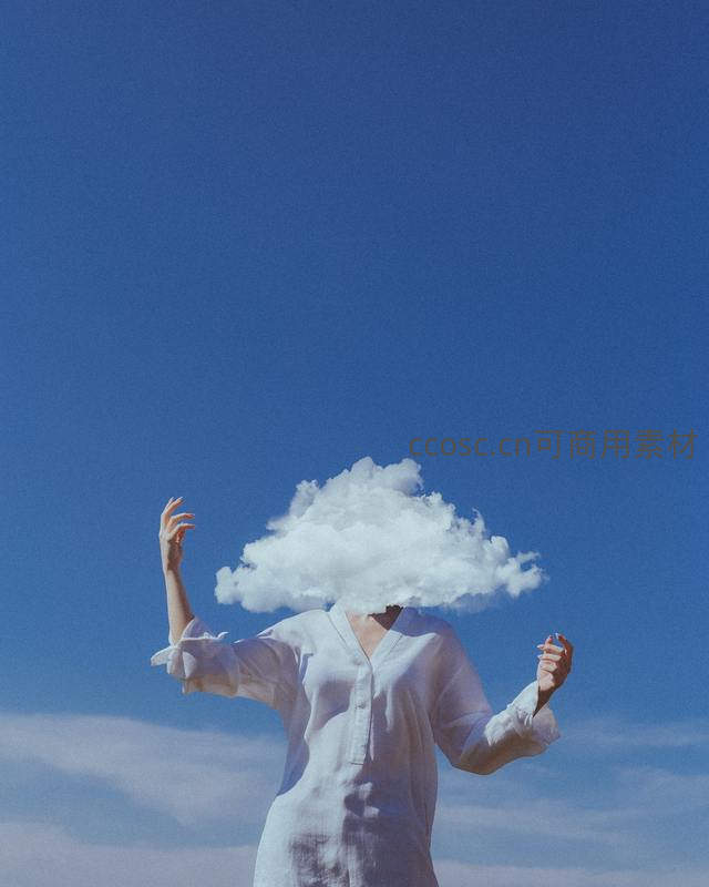 云朵遮面的超现实主义艺术照