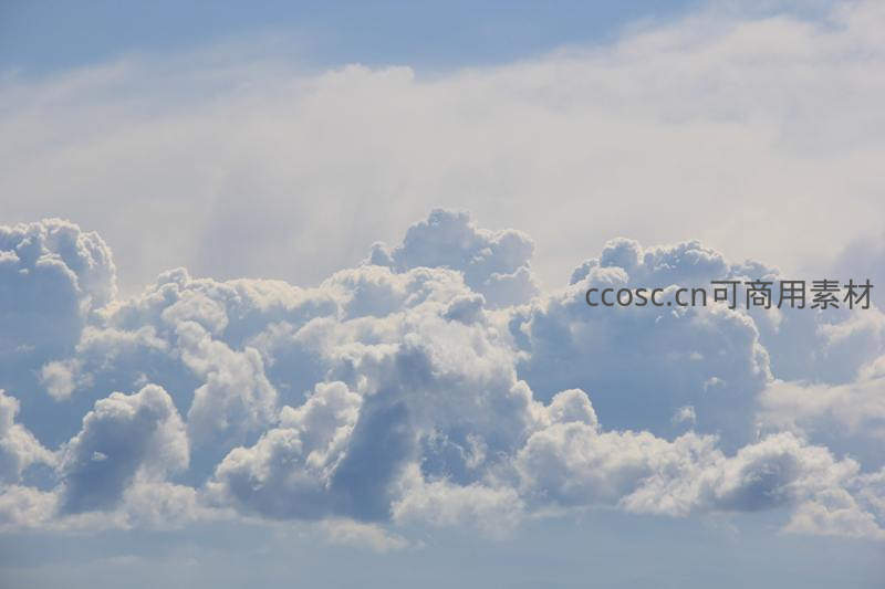 晴朗天空中漂浮着大片蓬松洁白的积云,层次分明,光影交错,展现出大自然壮丽而宁静的瞬间。