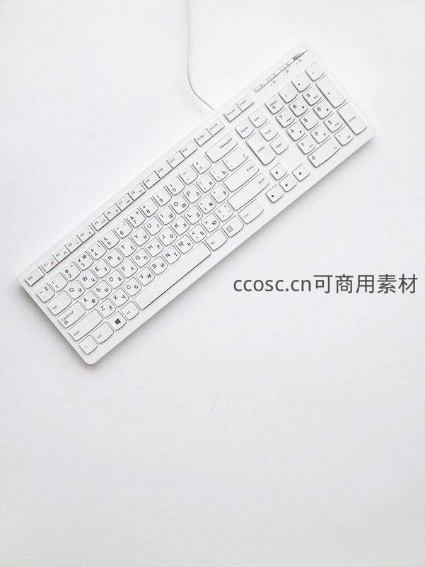 简洁白色键盘俯拍极简办公场景