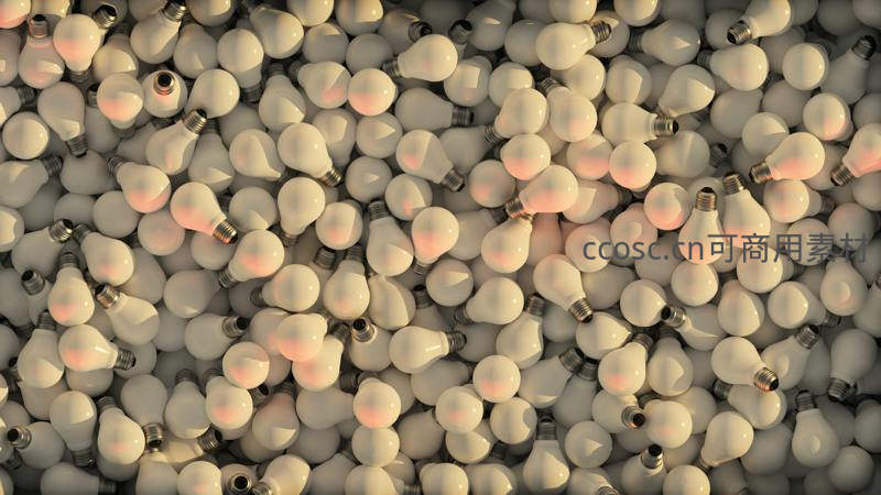 无数白色灯泡密集堆叠,部分散发温暖光芒,形成富有视觉冲击力的图案,完美诠释“点亮灵感”与“创新思维”的抽象概念。
