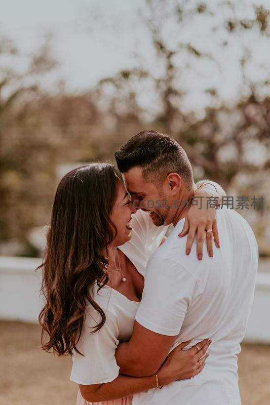 情侣深情相拥于户外暖阳之下
