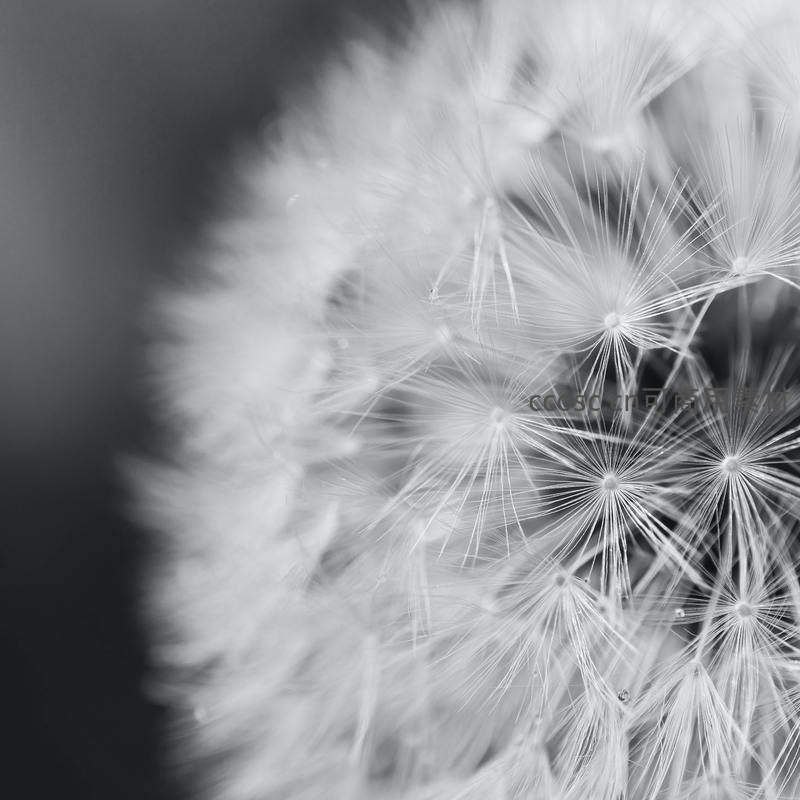 蒲公英种子特写,黑白微距艺术