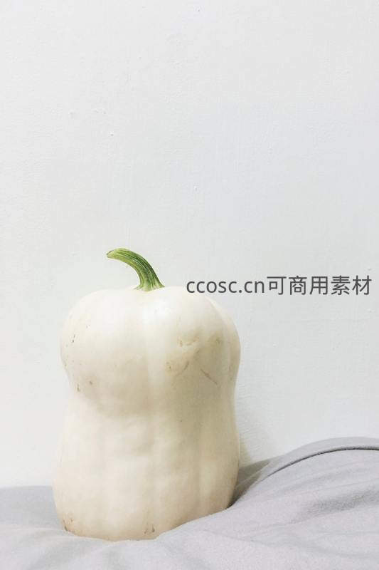 白色南瓜静置于素色布面