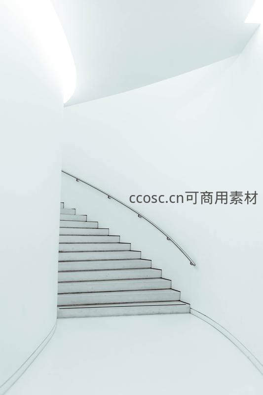 纯白空间中的螺旋楼梯,简约现代设计感