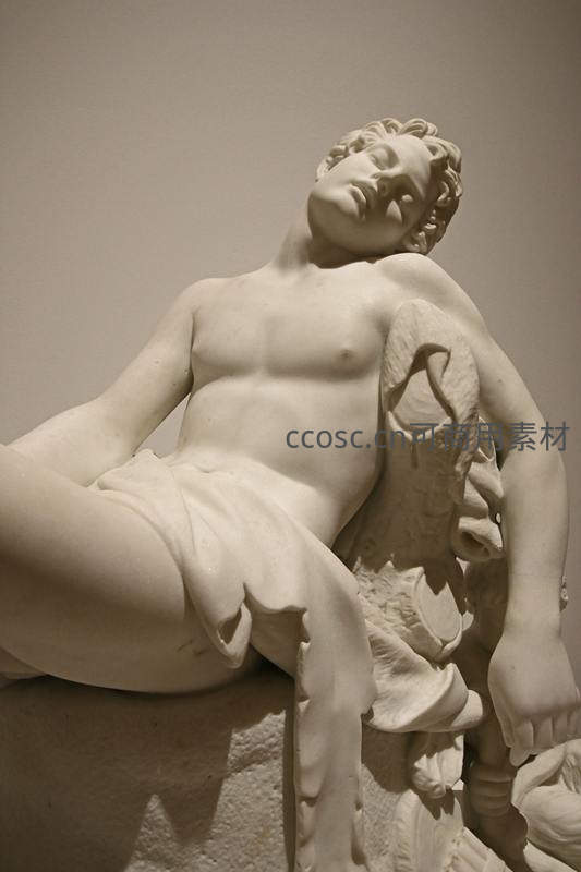 一尊精美的古典主义风格大理石雕像,细腻刻画了人物的肌肉线条与神情姿态,展现了西方雕塑艺术对理想人体美的追求与精湛工艺。