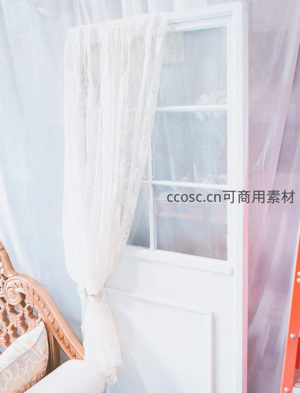 蕾丝窗帘轻拂白色复古门框