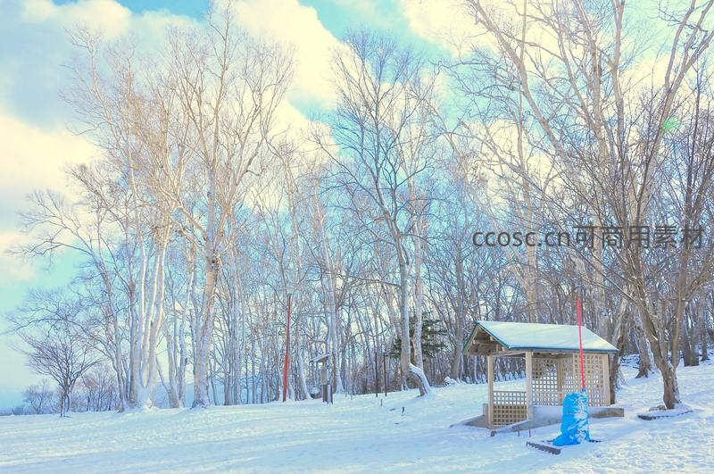 雪覆林间小亭冬日静谧风光