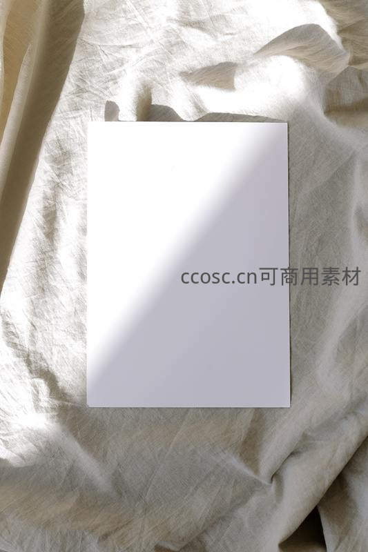 一张纯白纸张置于褶皱的米色亚麻布上,斜射的阳光勾勒出明暗交界,传递出慵懒、舒适与文艺的生活气息。