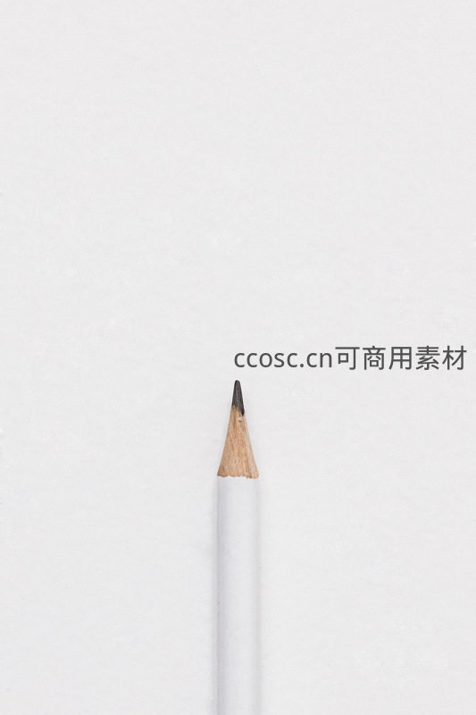白色铅笔的笔尖在纯白背景上被特写放大,木质纹理与石墨芯清晰可见,象征着思考、创作或学习的起点。