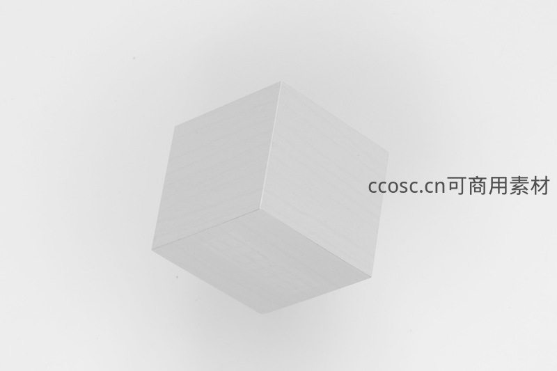 一个带有细微木纹纹理的白色立方体悬浮于纯白背景中,简洁的线条与柔和的阴影勾勒出纯粹的几何美感,充满现代设计感。