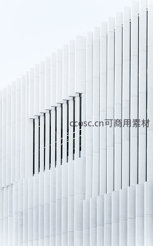 现代建筑立面线条,白色竖条结构韵律