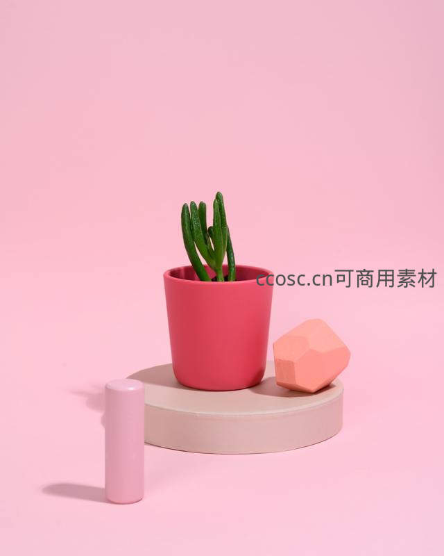 粉色盆栽多肉,几何摆件极简风