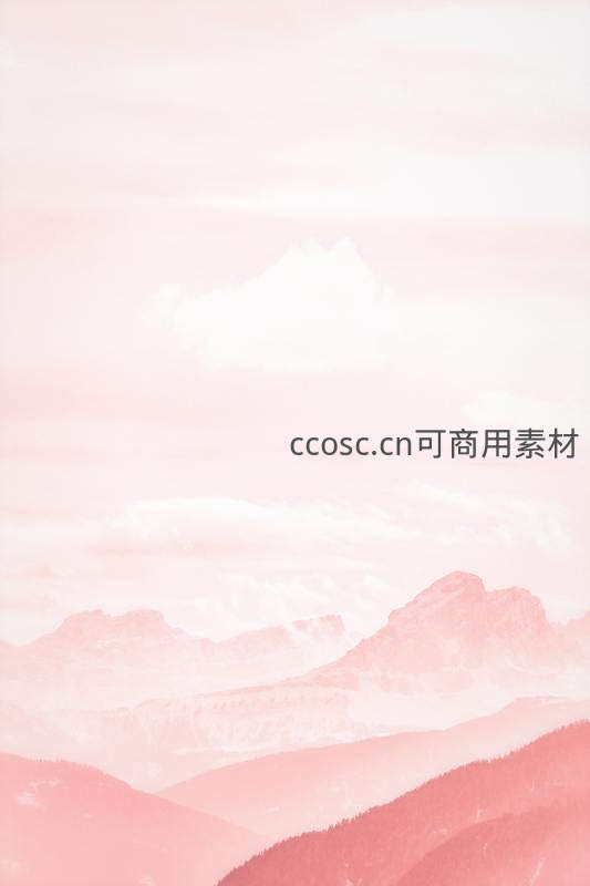 层叠山脉被梦幻粉色薄雾笼罩,天空与山体融为一体,营造出超现实的浪漫氛围,宛如童话世界中的诗意风景。