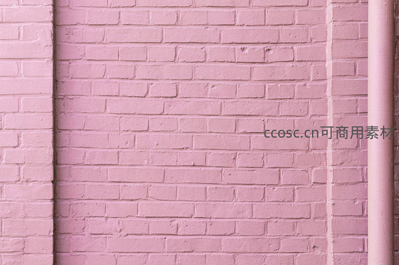 整面涂刷成柔和粉色的砖墙,保留原始砖缝肌理,右侧竖管增添结构感,适合作为极简风格或少女系设计的背景素材。