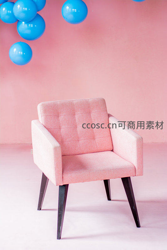 粉色单人沙发与蓝色气球